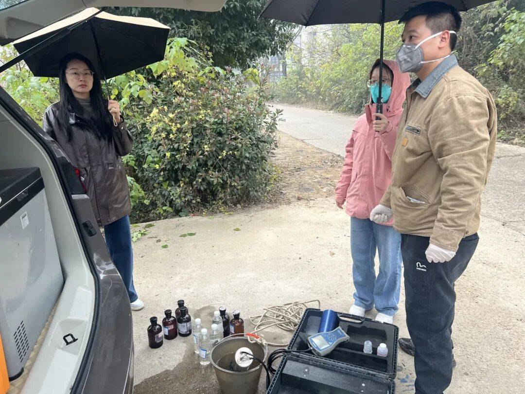 12月8日上午,市市政兴办核心机合对青山渠流域光坝排口等症结地点推行水质专项检测。(图文:姚敏)